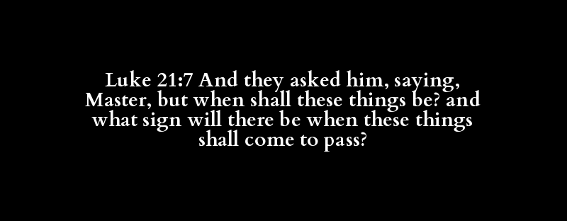 Luke 21:7 And they asked him, saying, Master, but when shall these things be? and what sign will there be when these things shall come to pass?