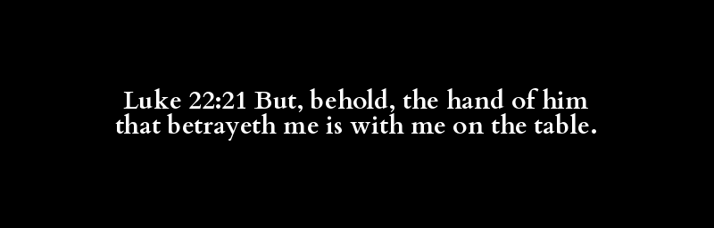 Luke 22:21 But, behold, the hand of him that betrayeth me is with me on the table.