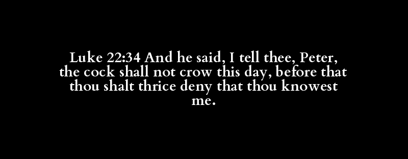 Luke 22:34 And he said, I tell thee, Peter, the cock shall not crow this day, before that thou shalt thrice deny that thou knowest me.
