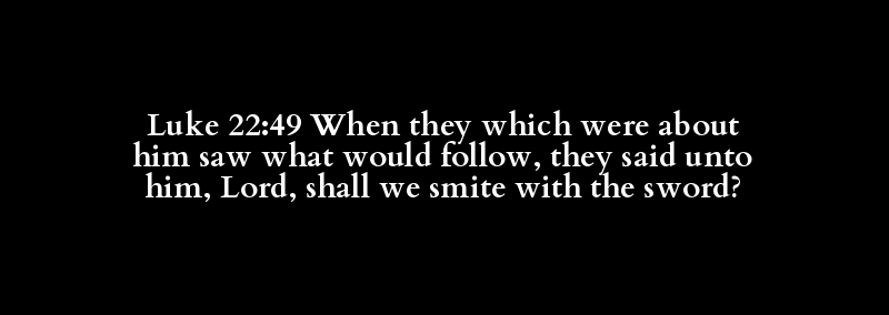 Luke 22:49 When they which were about him saw what would follow, they said unto him, Lord, shall we smite with the sword?