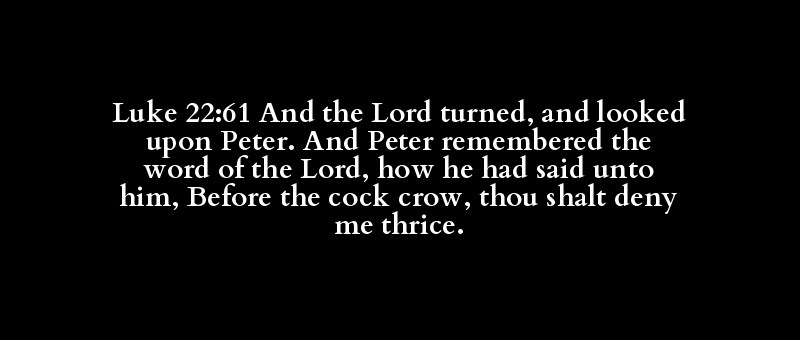 Luke 22:61 And the Lord turned, and looked upon Peter. And Peter remembered the word of the Lord, how he had said unto him, Before the cock crow, thou shalt deny me thrice.