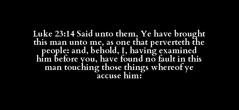 Luke 23:14 Said unto them, Ye have brought this man unto me, as one that perverteth the people: and, behold, I, having examined him before you, have found no fault in this man touching those things whereof ye accuse him: