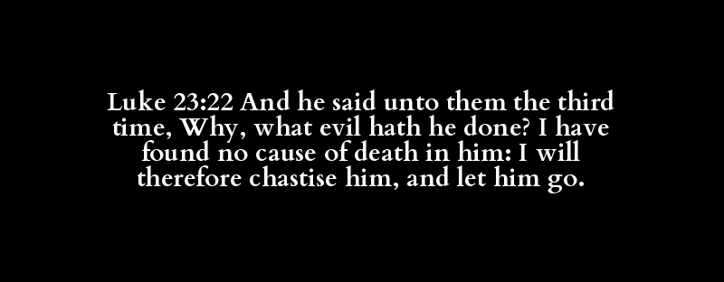 Luke 23:22 And he said unto them the third time, Why, what evil hath he done? I have found no cause of death in him: I will therefore chastise him, and let him go.