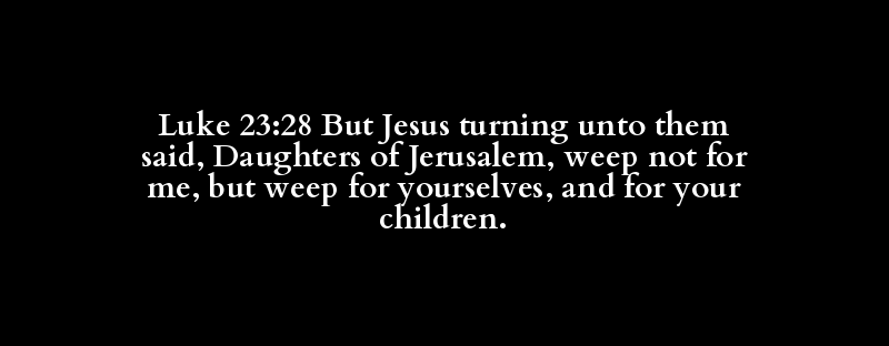 Luke 23:28 But Jesus turning unto them said, Daughters of Jerusalem, weep not for me, but weep for yourselves, and for your children.