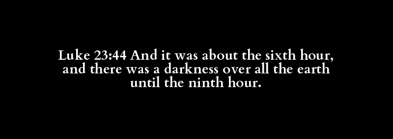 Luke 23:44 And it was about the sixth hour, and there was a darkness over all the earth until the ninth hour.