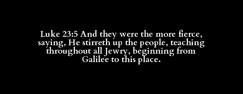 Luke 23:5 And they were the more fierce, saying, He stirreth up the people, teaching throughout all Jewry, beginning from Galilee to this place.