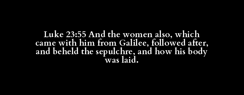 Luke 23:55 And the women also, which came with him from Galilee, followed after, and beheld the sepulchre, and how his body was laid.