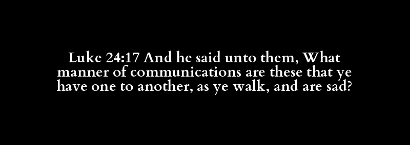 Luke 24:17 And he said unto them, What manner of communications are these that ye have one to another, as ye walk, and are sad?