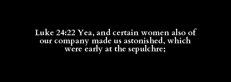 Luke 24:22 Yea, and certain women also of our company made us astonished, which were early at the sepulchre;