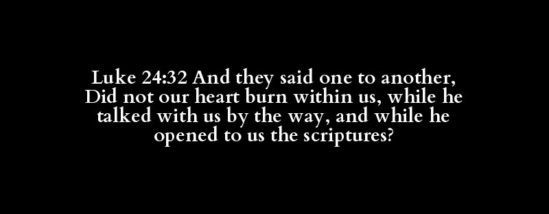 Luke 24:32 And they said one to another, Did not our heart burn within us, while he talked with us by the way, and while he opened to us the scriptures?