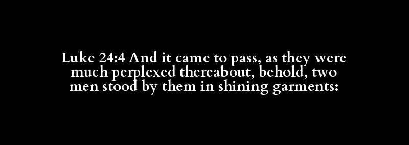 Luke 24:4 And it came to pass, as they were much perplexed thereabout, behold, two men stood by them in shining garments: