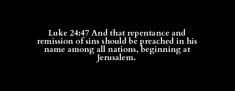 Luke 24:47 And that repentance and remission of sins should be preached in his name among all nations, beginning at Jerusalem.