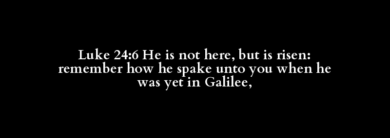 Luke 24:6 He is not here, but is risen: remember how he spake unto you when he was yet in Galilee,