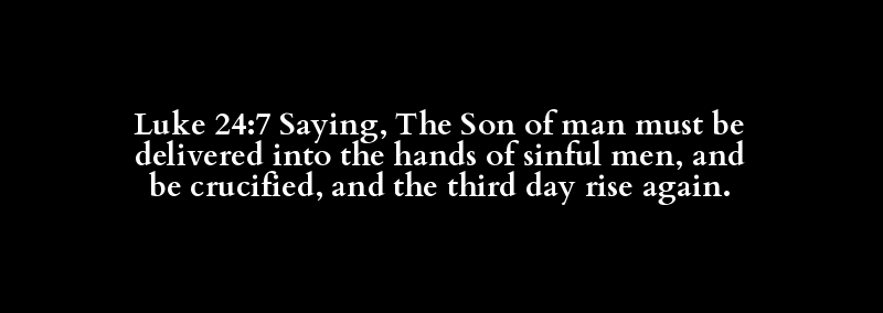 Luke 24:7 Saying, The Son of man must be delivered into the hands of sinful men, and be crucified, and the third day rise again.