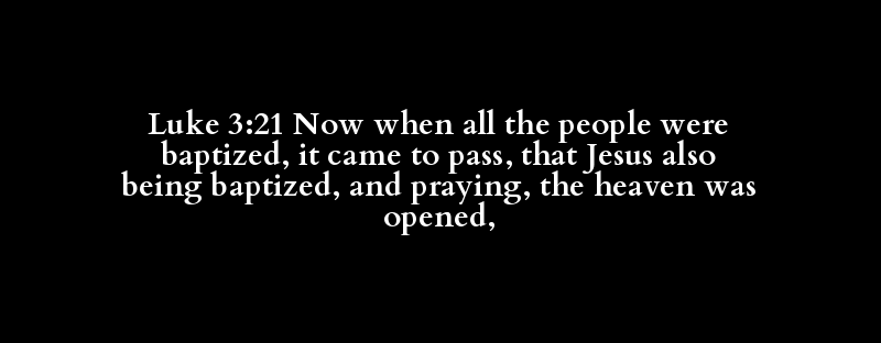 Luke 3:21 Now when all the people were baptized, it came to pass, that Jesus also being baptized, and praying, the heaven was opened,