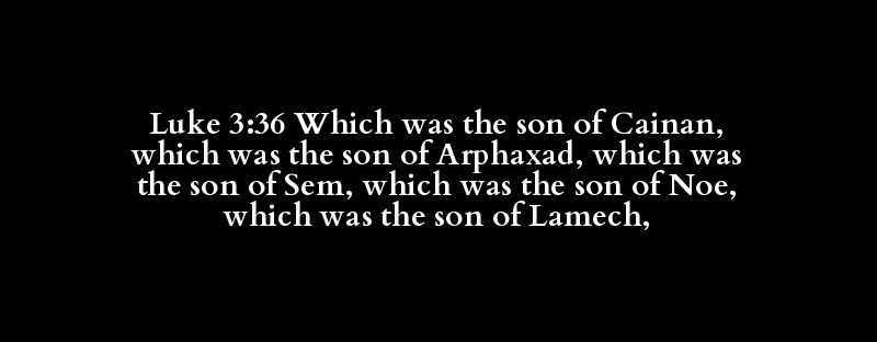 Luke3:36 From Original Authorized King James VersionLuke 3:36 Which was the son of Cainan, which was the son of Arphaxad, which was the son of Sem, which was the son of Noe, which was the son of Lamech,