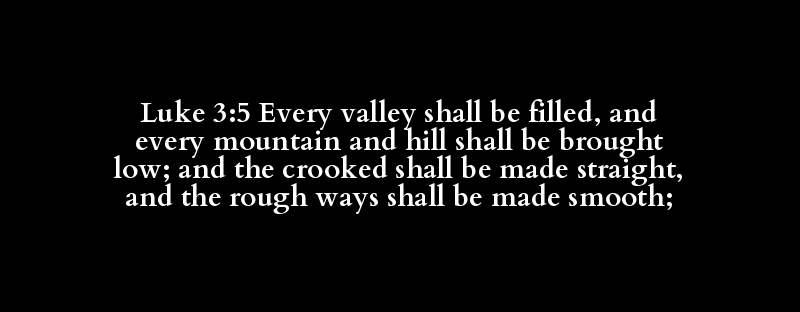 Luke 3:5 Every valley shall be filled, and every mountain and hill shall be brought low; and the crooked shall be made straight, and the rough ways shall be made smooth;