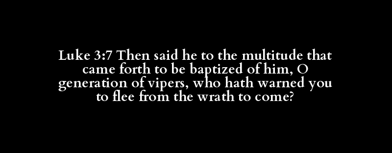 Luke 3:7 Then said he to the multitude that came forth to be baptized of him, O generation of vipers, who hath warned you to flee from the wrath to come?