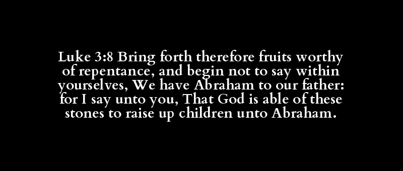 Luke 3:8 Bring forth therefore fruits worthy of repentance, and begin not to say within yourselves, We have Abraham to our father: for I say unto you, That God is able of these stones to raise up children unto Abraham.
