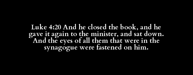 Luke 4:20 And he closed the book, and he gave it again to the minister, and sat down. And the eyes of all them that were in the synagogue were fastened on him.