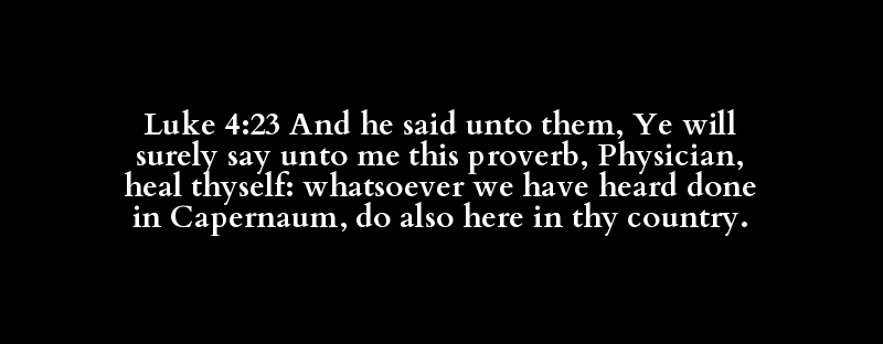Luke 4:23 And he said unto them, Ye will surely say unto me this proverb, Physician, heal thyself: whatsoever we have heard done in Capernaum, do also here in thy country.