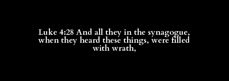 Luke 4:28 And all they in the synagogue, when they heard these things, were filled with wrath,
