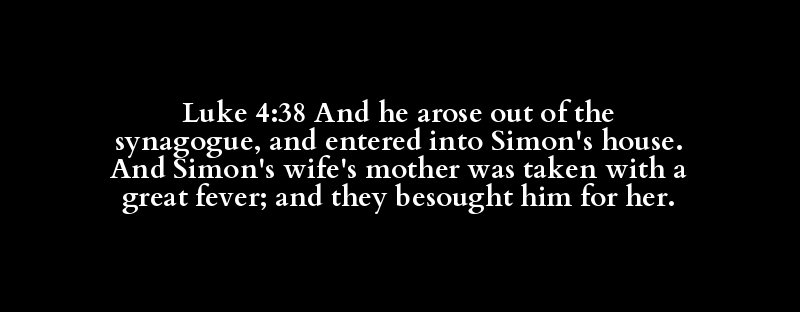 Luke 4:38 And he arose out of the synagogue, and entered into Simon's house. And Simon's wife's mother was taken with a great fever; and they besought him for her.