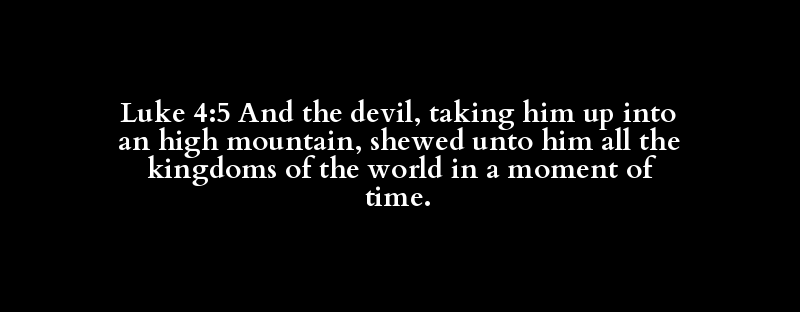 Luke 4:5 And the devil, taking him up into an high mountain, shewed unto him all the kingdoms of the world in a moment of time.