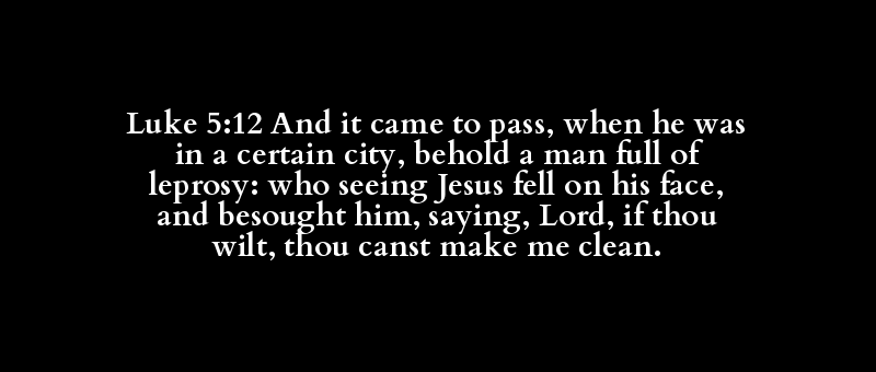 | [kai] | [ginomai] | [autos] | [einai] | [en] | [en] | [mia] | [polis] | [kai] | [idou] | [aner] | [pleres] | [lepra] | [kai] | [eido] | [Iesous] | [pipto] | [epi] | [prosopon] | [deomai] | [autos] | [lego] | [kurios] | [ean] | [thelo] | [dunamai] | [katharizo] | [me] | [katharizo] |