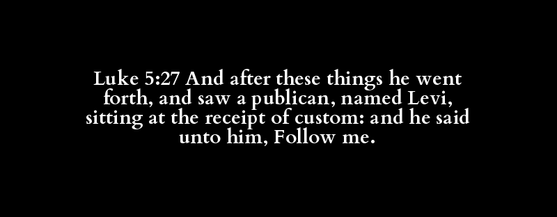 Luke 5:27 And after these things he went forth, and saw a publican, named Levi, sitting at the receipt of custom: and he said unto him, Follow me.