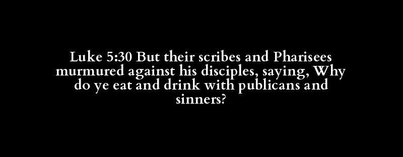 Luke 5:30 But their scribes and Pharisees murmured against his disciples, saying, Why do ye eat and drink with publicans and sinners?