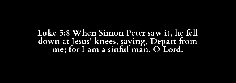 Luke 5:8 When Simon Peter saw it, he fell down at Jesus' knees, saying, Depart from me; for I am a sinful man, O Lord.