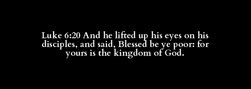 Luke 6:20 And he lifted up his eyes on his disciples, and said, Blessed be ye poor: for yours is the kingdom of God.