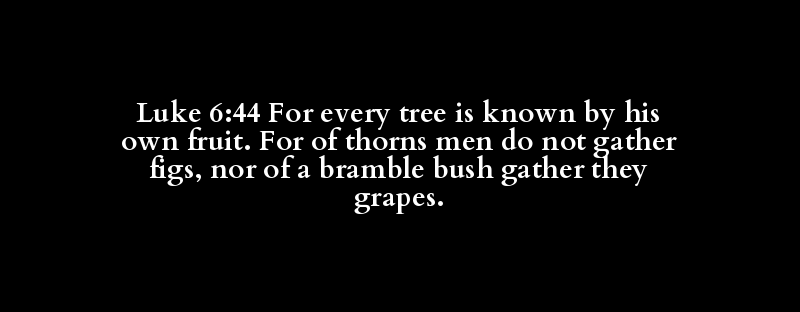 Luke 6:44 For every tree is known by his own fruit. For of thorns men do not gather figs, nor of a bramble bush gather they grapes.