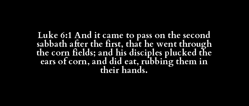 Luke 6:1 And it came to pass on the second sabbath after the first, that he went through the corn fields; and his disciples plucked the ears of corn, and did eat, rubbing them in their hands.