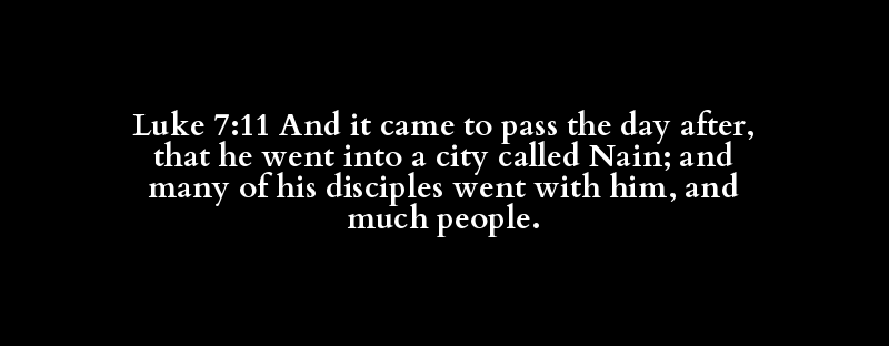 Luke 7:11 And it came to pass the day after, that he went into a city called Nain; and many of his disciples went with him, and much people.