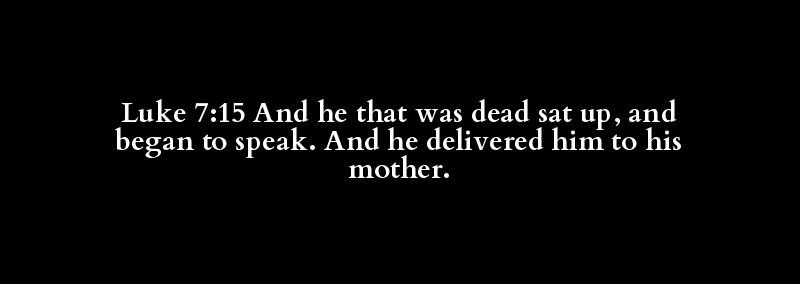 Luke 7:15 And he that was dead sat up, and began to speak. And he delivered him to his mother.