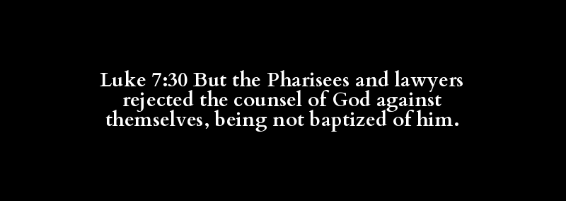 Luke 7:30 But the Pharisees and lawyers rejected the counsel of God against themselves, being not baptized of him.