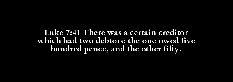 Luke 7:41 There was a certain creditor which had two debtors: the one owed five hundred pence, and the other fifty.