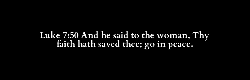 Luke 7:50 And he said to the woman, Thy faith hath saved thee; go in peace.
