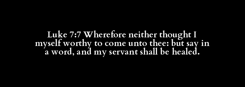 Luke 7:7 Wherefore neither thought I myself worthy to come unto thee: but say in a word, and my servant shall be healed.