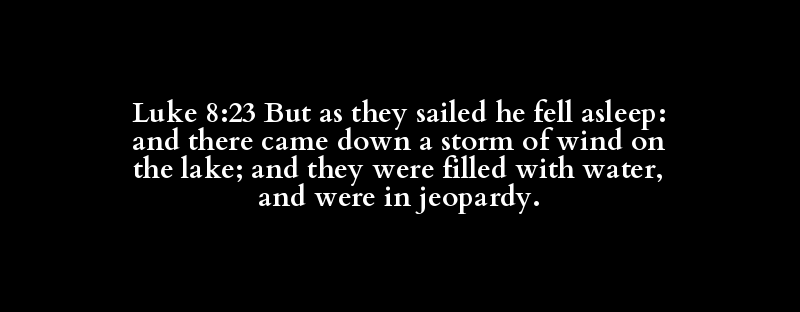 Luke 8:23 But as they sailed he fell asleep: and there came down a storm of wind on the lake; and they were filled with water, and were in jeopardy.