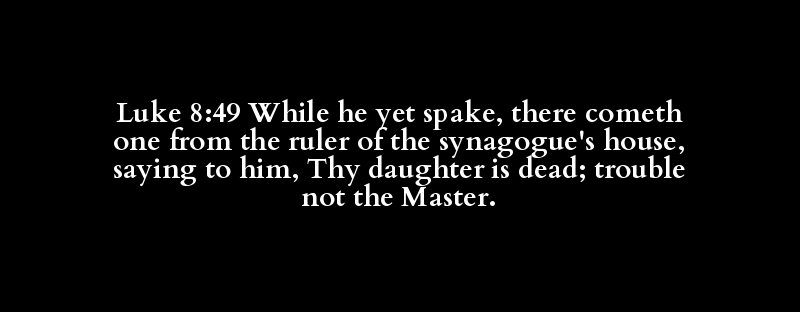 Luke 8:49 While he yet spake, there cometh one from the ruler of the synagogue's house, saying to him, Thy daughter is dead; trouble not the Master.