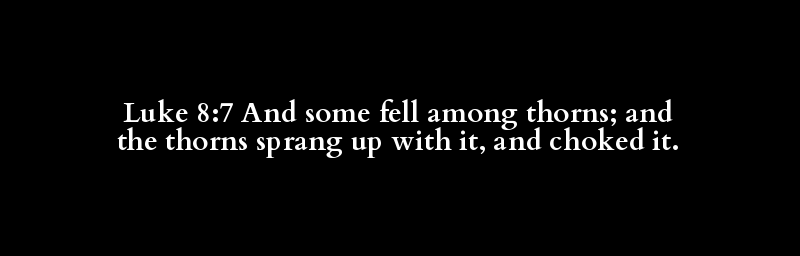 Luke 8:7 And some fell among thorns; and the thorns sprang up with it, and choked it.