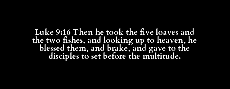 Luke 9:16 Then he took the five loaves and the two fishes, and looking up to heaven, he blessed them, and brake, and gave to the disciples to set before the multitude.