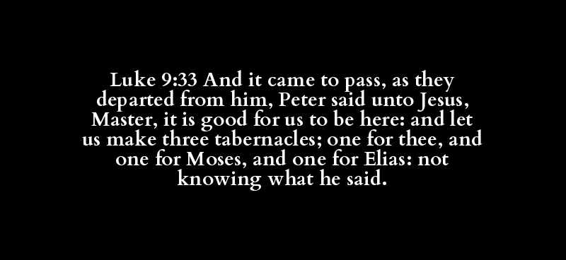 | καί | γίνομαι | ἐν | αὐτός | διαχωρίζομαι | ἀπό | αὐτός | Πέτρος | ἔπω | πρός | Ἰησοῦς | ἐπιστάτης | ἐστί | καλός | ἡμᾶς | εἶναι | ὧδε | καί | ποιέω | τρεῖς | σκηνή | μία | σοί | καί | μία | Μωσεύς | καί | μία | Ἡλίας | μή | εἴδω | ὅς | λέγω |