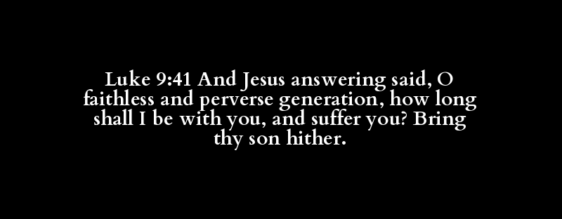 | δέ | Ἰησοῦς | ἀποκρίνομαι | ἔπω | ὦ | ἄπιστος | καί | διαστρέφω | γενεά | ἕως | πότε | ἔσομαι | πρός | ὑμᾶς | καί | ἀνέχομαι | ὑμῶν | προσάγω | σοῦ | υἱός | ὧδε |
