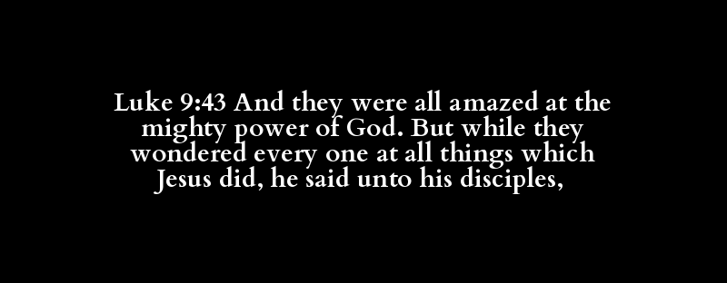 Luke 9:43 And they were all amazed at the mighty power of God. But while they wondered every one at all things which Jesus did, he said unto his disciples,