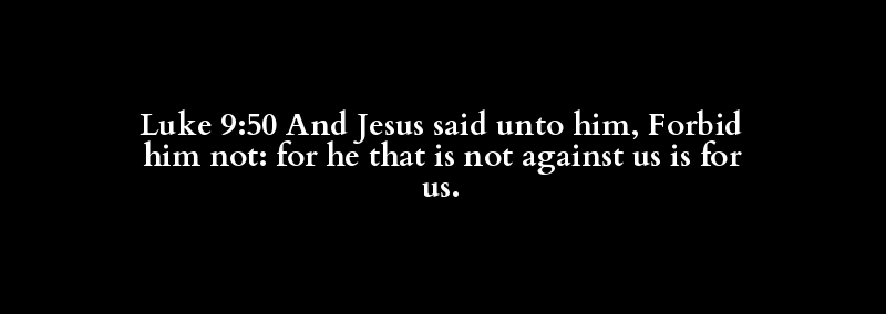 Luke 9:50 And Jesus said unto him, Forbid him not: for he that is not against us is for us.