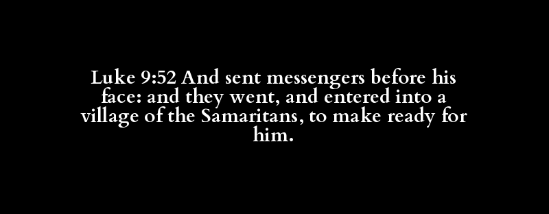 Luke 9:52 And sent messengers before his face: and they went, and entered into a village of the Samaritans, to make ready for him.